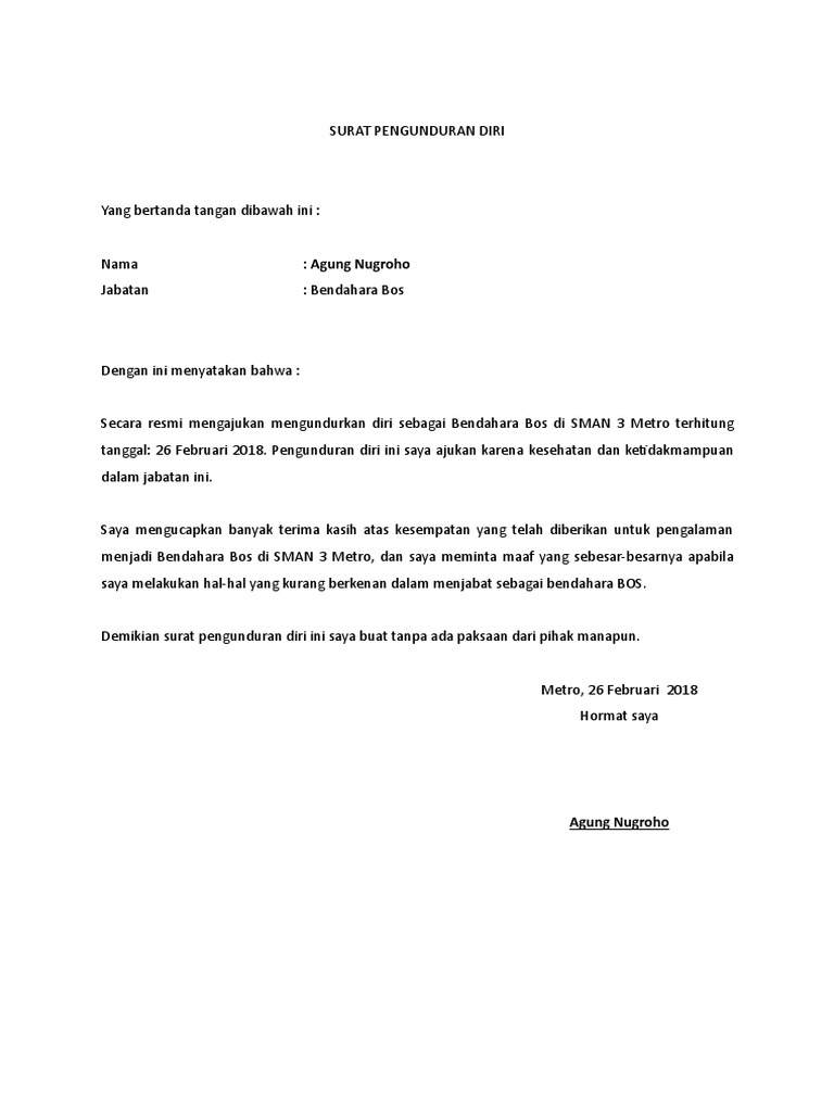 Judul: Contoh Surat Pengunduran Diri Sebagai Bendahara Bos Kumpulan Contoh Surat Dan Soal Terlengkap |